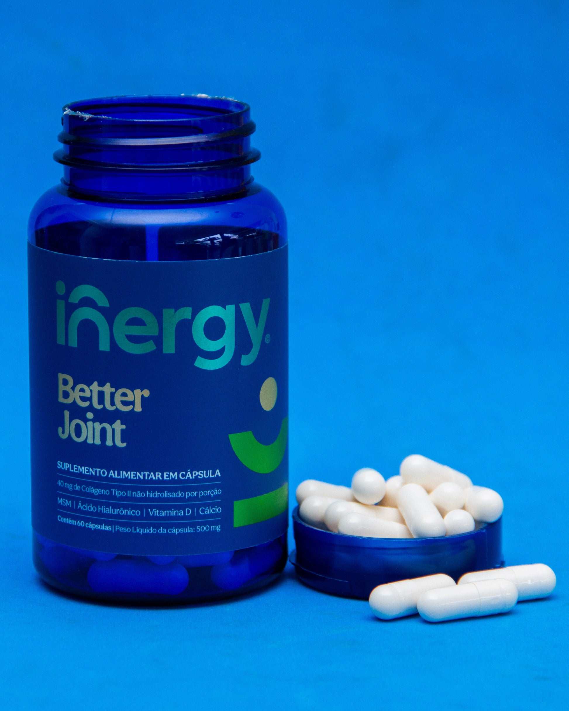 Melhore a integridade e o desempenho de suas articulações com Better Joint Innergy®. Reunimos Ácido hialurônico, Colágeno Tipo 2 e MSM, ativos importantes para redução de rigidez, estalos e falta de mobilidade articular. Com fórmula exclusiva, reforçada com Vitamina D, Vitamina C e Cálcio, sinta-se seguro e disposto para performar melhor nos seus treinos, divertir-se com sua família e manter uma rotina diária saudável.