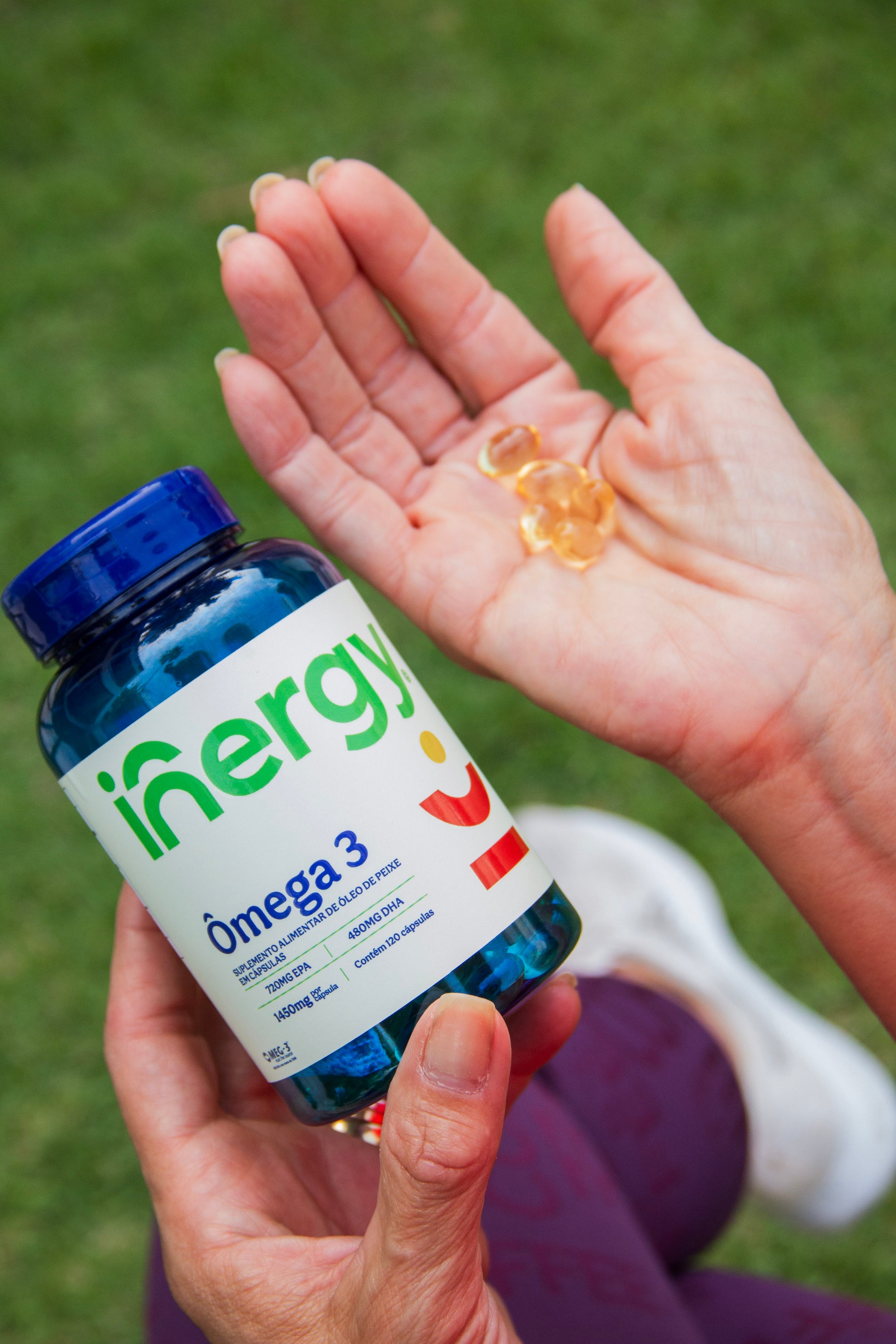 Super Ômega Innergy é um suplemento concentrado de Ômega 3 formulado para potencializar sua saúde cardiovascular e cognitiva. Com alto poder antioxidante, protege o coração e promove regeneração neuronal, reduzindo declínio cognitivo e mantendo a integridade da bainha de mielina. Cada frasco contém 120 cápsulas com dosagens flexíveis: 2 cápsulas (360mg EPA + 240mg DHA), 3 cápsulas (540mg EPA + 360mg DHA) ou 4 cápsulas (720mg EPA + 480mg DHA). Adapte sua ingestão conforme orientação profissional e mantenha corpo e cérebro ativos e saudáveis.